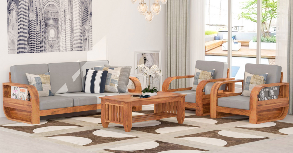 Experience comfort and style with the Ira Sofa Set, featuring a sturdy sheesham wood frame built to last. This 3+1+1 arrangement offers ample seating for your living space, while the integrated magazine rack adds practical storage without compromising elegance. Perfect for creating a warm, inviting atmosphere in your home.